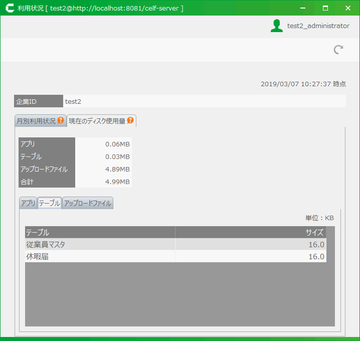 利用状況を確認するにはシステム管理者の権限が必要です。