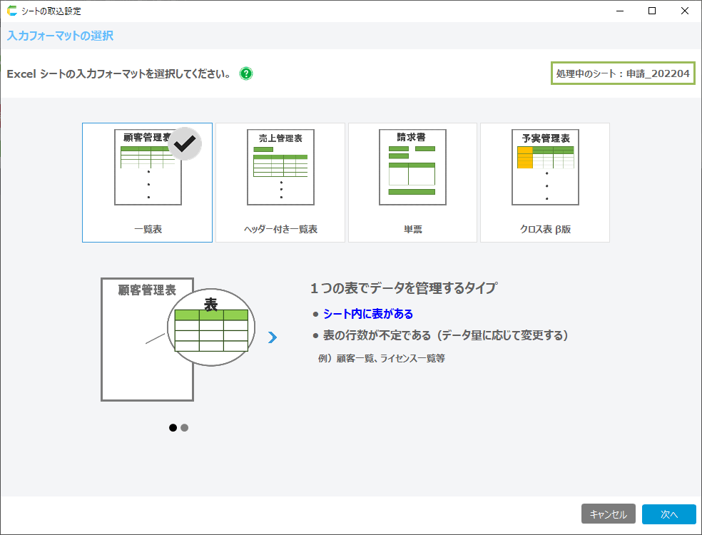 これ以降の画面の操作については、 入力フォーマットの選択画面 を参照してください。