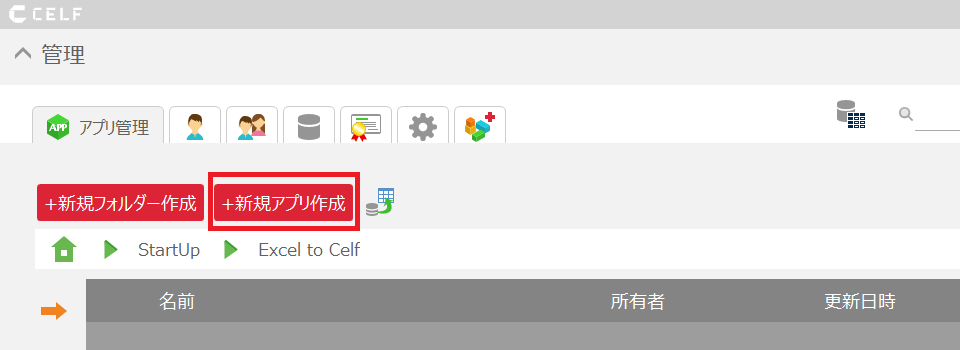 - CELF に ログイン し、管理画面の「アプリ管理」タブを開きます。