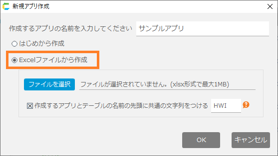機能の詳細なヘルプは Excelファイルからアプリを作成する を参照してください。