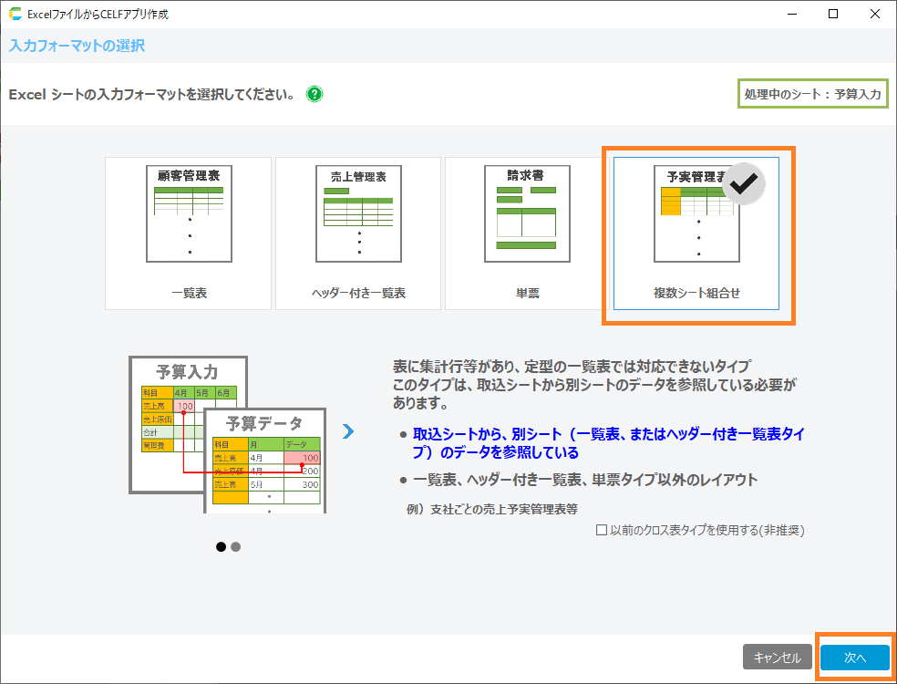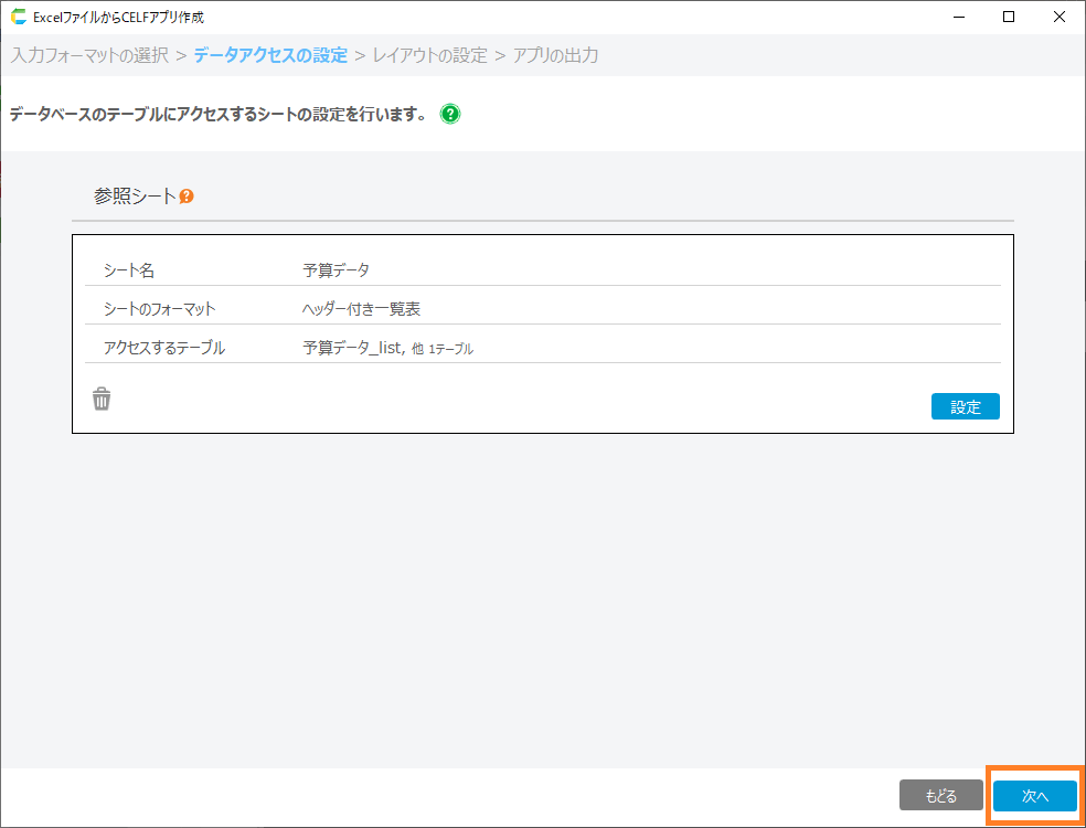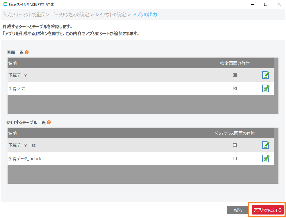 このページでは、複数シート組合せ形式のExcelサンプルからアプリを作成する手順を説明します。