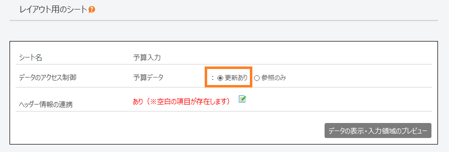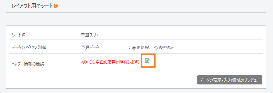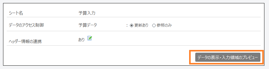- 「データの表示・入力領域のプレビュー」ボタンをクリックし、「データの表示・入力領域のプレビュー」ダイアログを開きます。