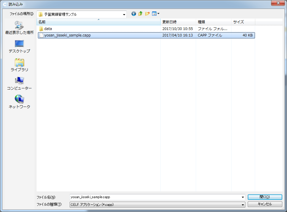 - ダウンロードしたサンプルアプリファイル(.capp)を選択します。