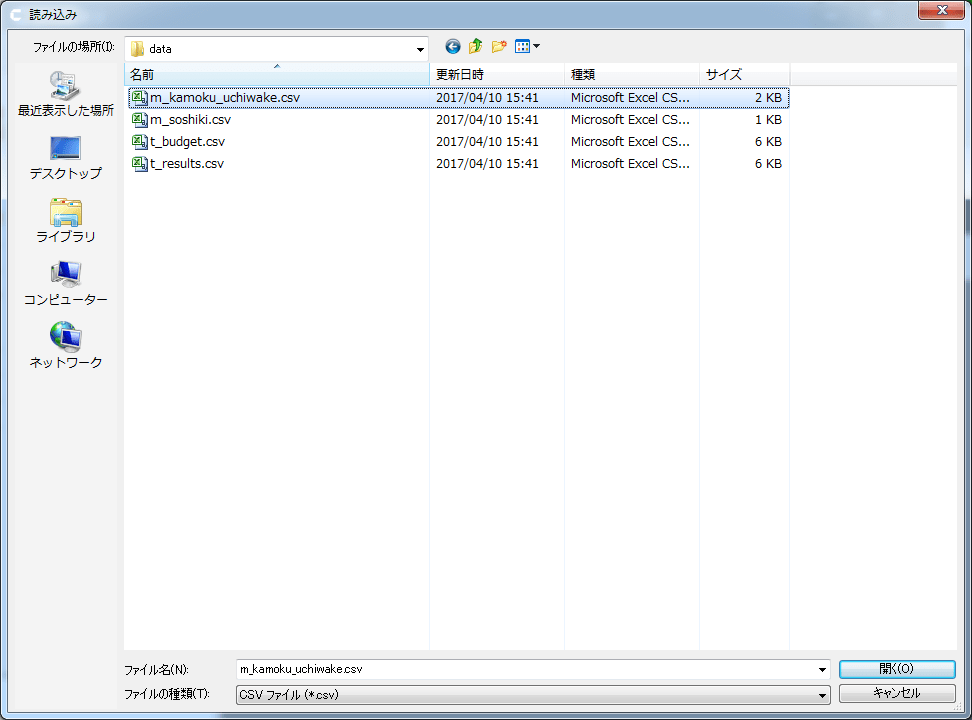 - 手順2で選択したテーブルと同じ名前のテーブルデータファイル(.csv)を選択します。