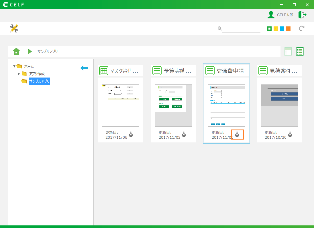 - 公開アプリ画面にて、オフライン時に使用するアプリの「ダウンロード」ボタンをクリックします。
