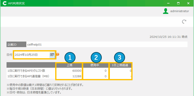 なお、Web APIの利用状況を確認するにはシステム管理者の権限が必要です。